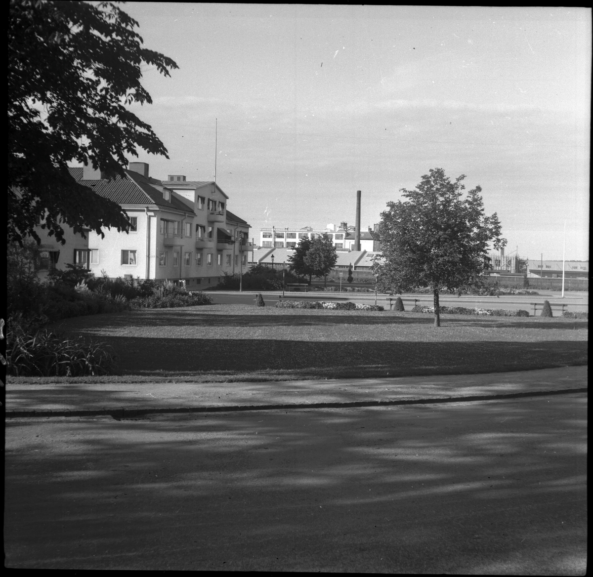 Nyköping. Stationsplan. I bakgrunden Sunlightfabriken.