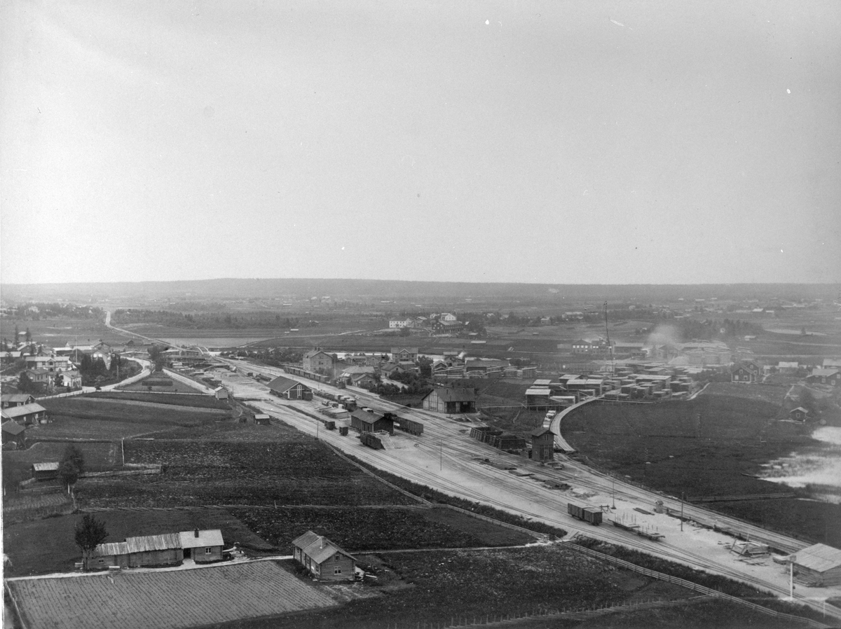 DONJ- och SJ- bangård, Ockelbo samhälle. Bilden tagen från kyrktornet.