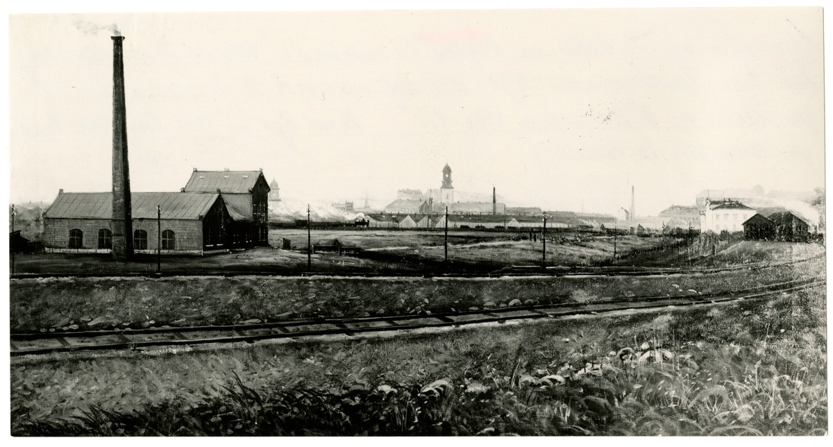 Längst till höger Bergslagarnas station Göteborg, närmast BJs, Bergslagernas Järnväg, huvudspår, på banken bakom GHBs, Göteborg - Hallandsbanan, huvudspår.