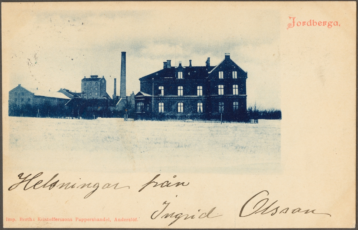 Jordberga sockerbruk med okänt hus i förgrunden.