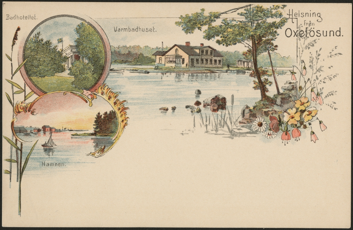 Vykort med olika motiv från Oxelösund, flerbildsvykort.