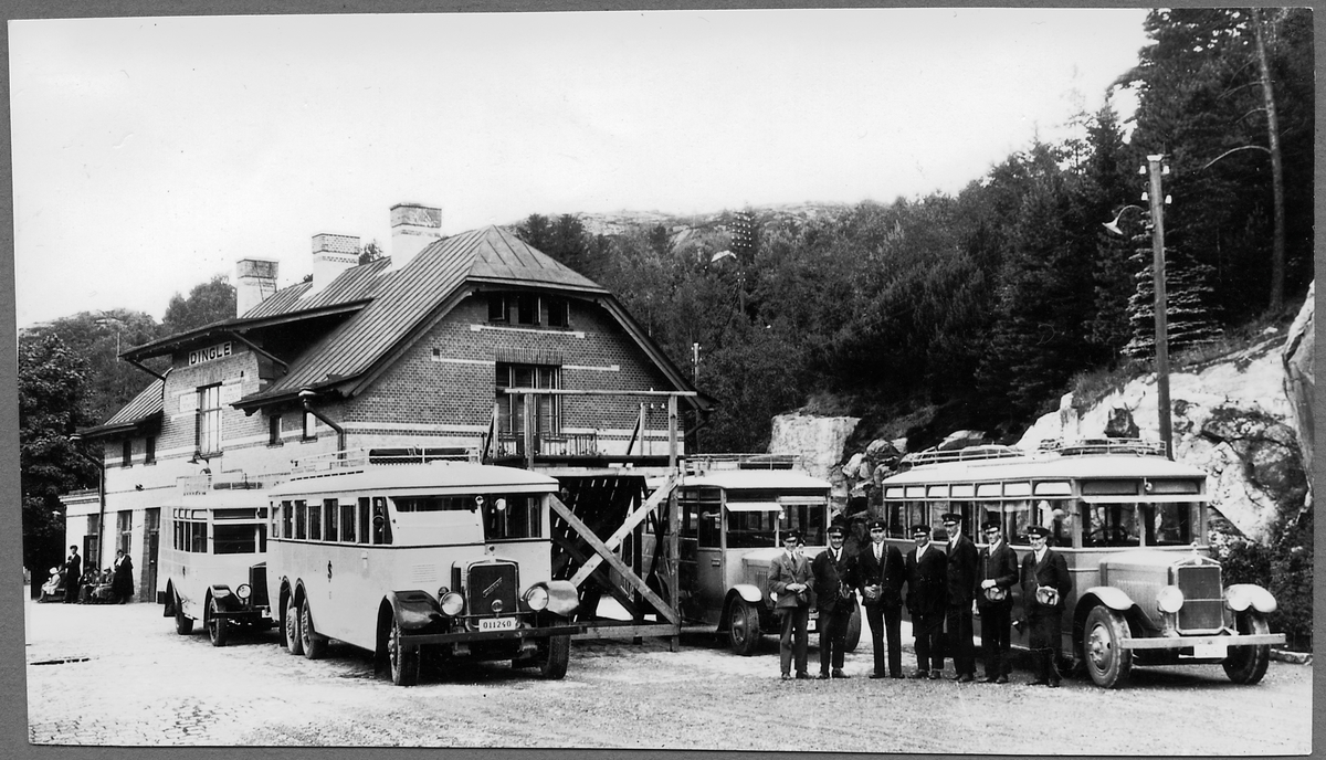 Dingle station. Statens järnvägar, SJ bussar väntar på tågets ankomst.