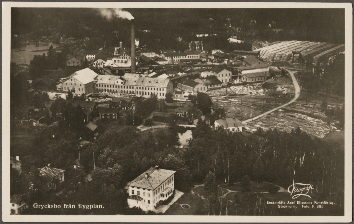 Flygfoto över Grycksbo pappersbruk.