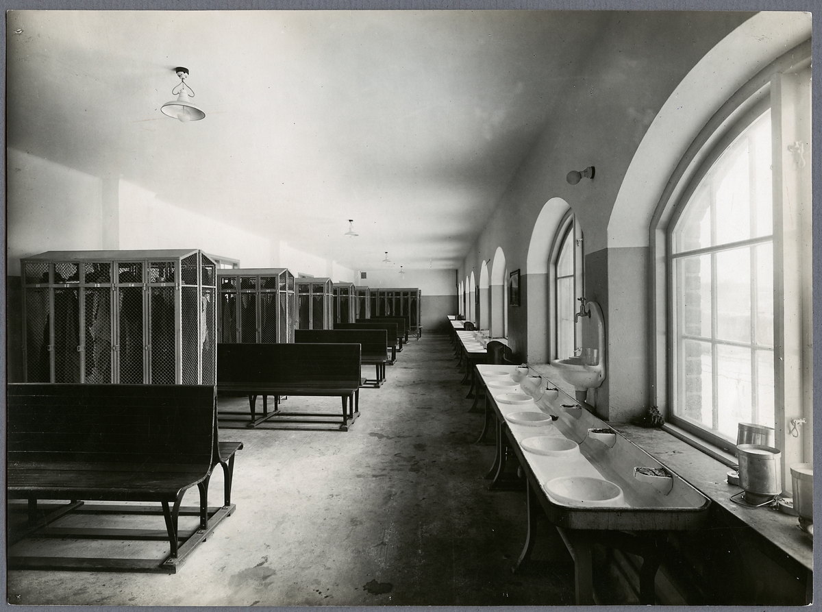 Interiör av Järnvägsverkstädernas omklädningsrum för arbetarna i lokverkstaden.