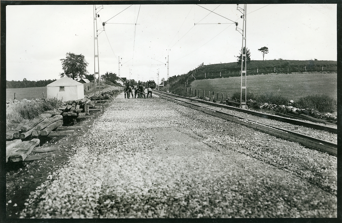 Utplanering av andra lagret makadam på linjen mellan Sösdala och Tjörnarp.