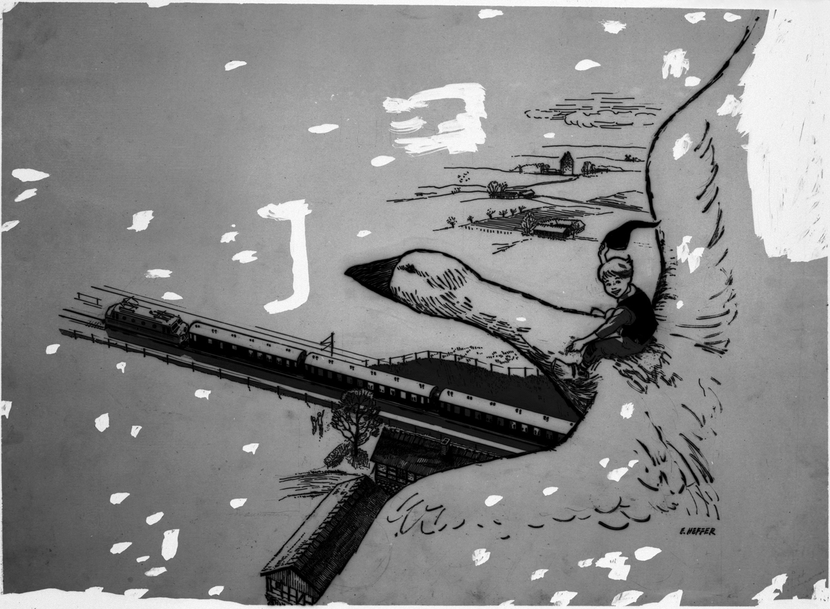 Nils Holgersson-teckning. Nils Holgersson turen.