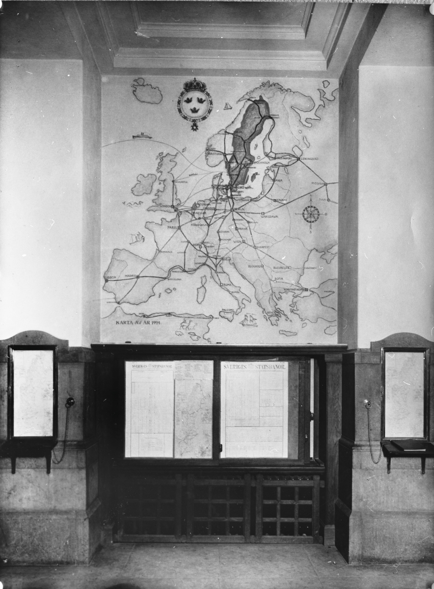 Biljetthallen med järnvägskartan.
