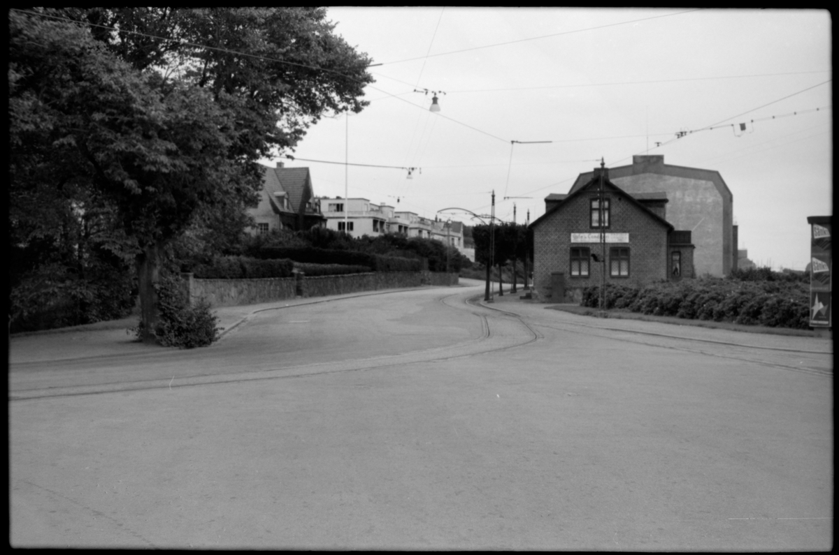 Helsingborgs Stads Spårvägar, HSS spårväg vid ändhållsplatsen i Pålsjö, spåret till höger är för ankommande och till vänster för avgående vagnar. Bakom kameran går det tredje spåret i triangeln.