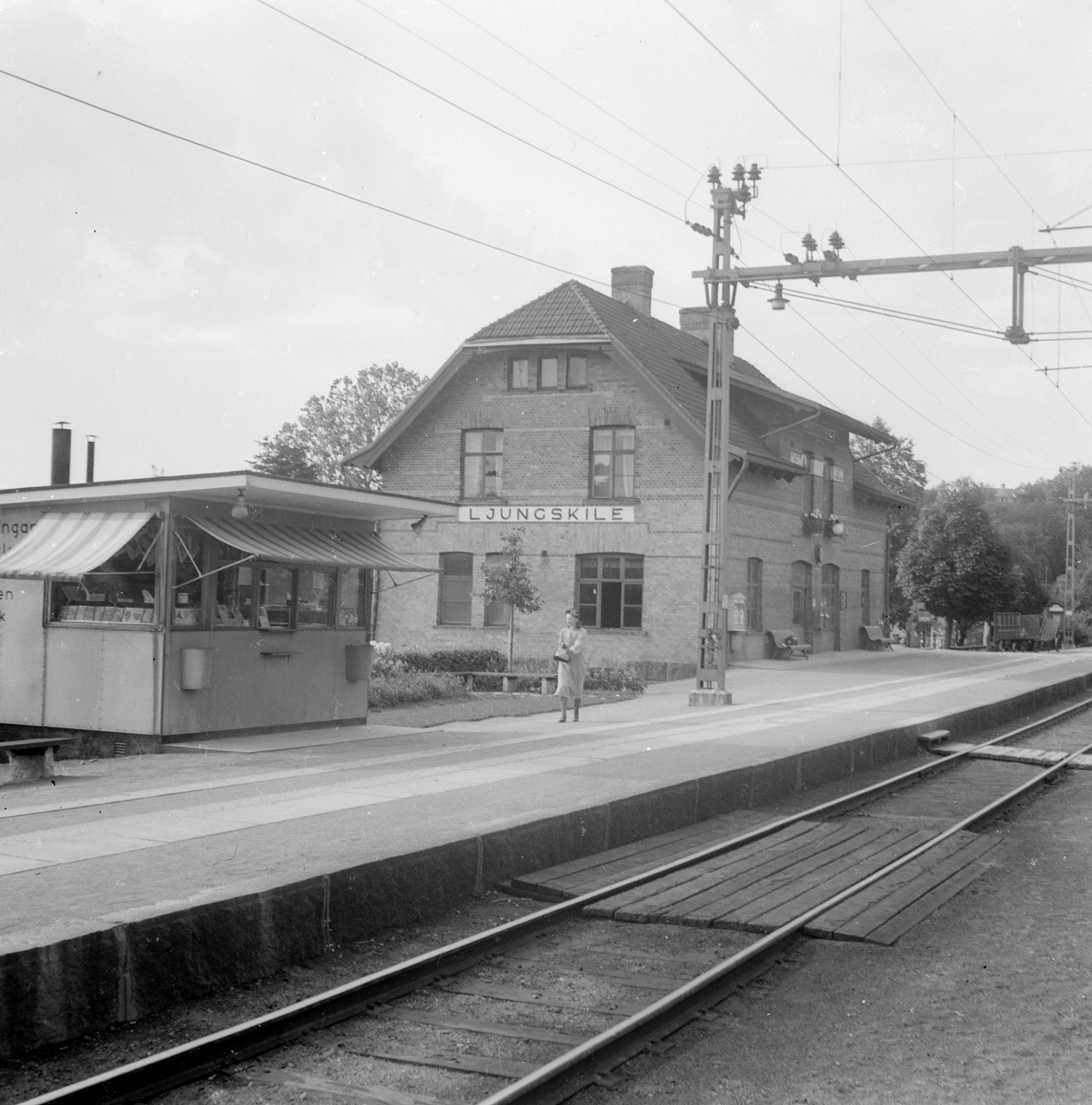 Ljungskile station anlagd 1907. Stationshus i två våningar i sten. Järnvägen elektrifierades 1939.