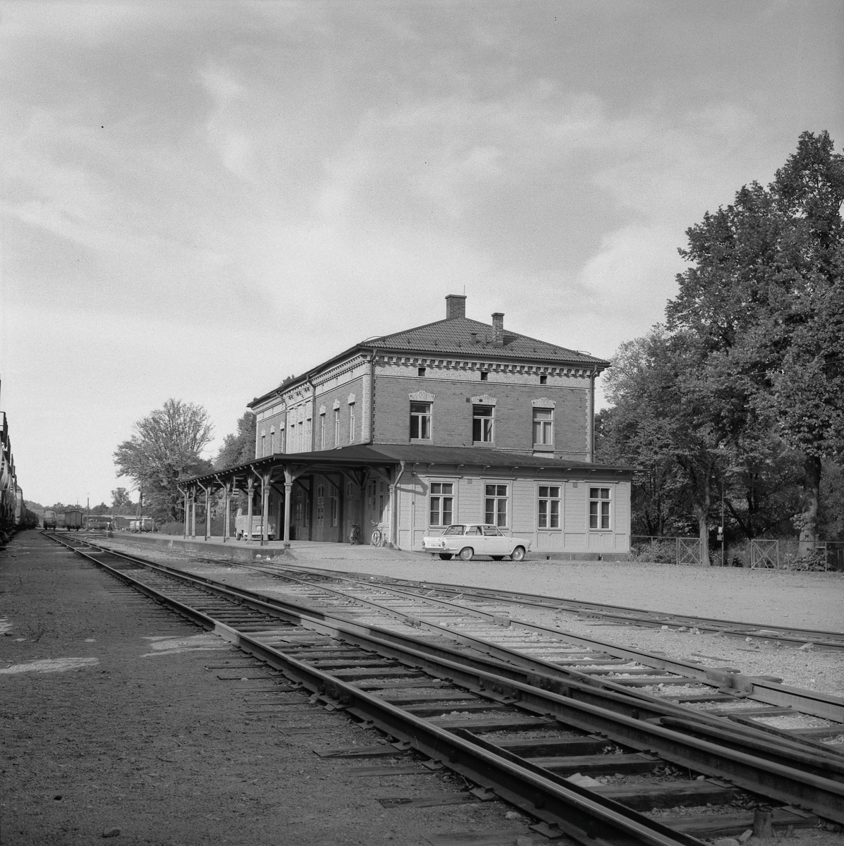 Karlshamn station. Personbilen vid husgaveln är en Ford Cortina.
