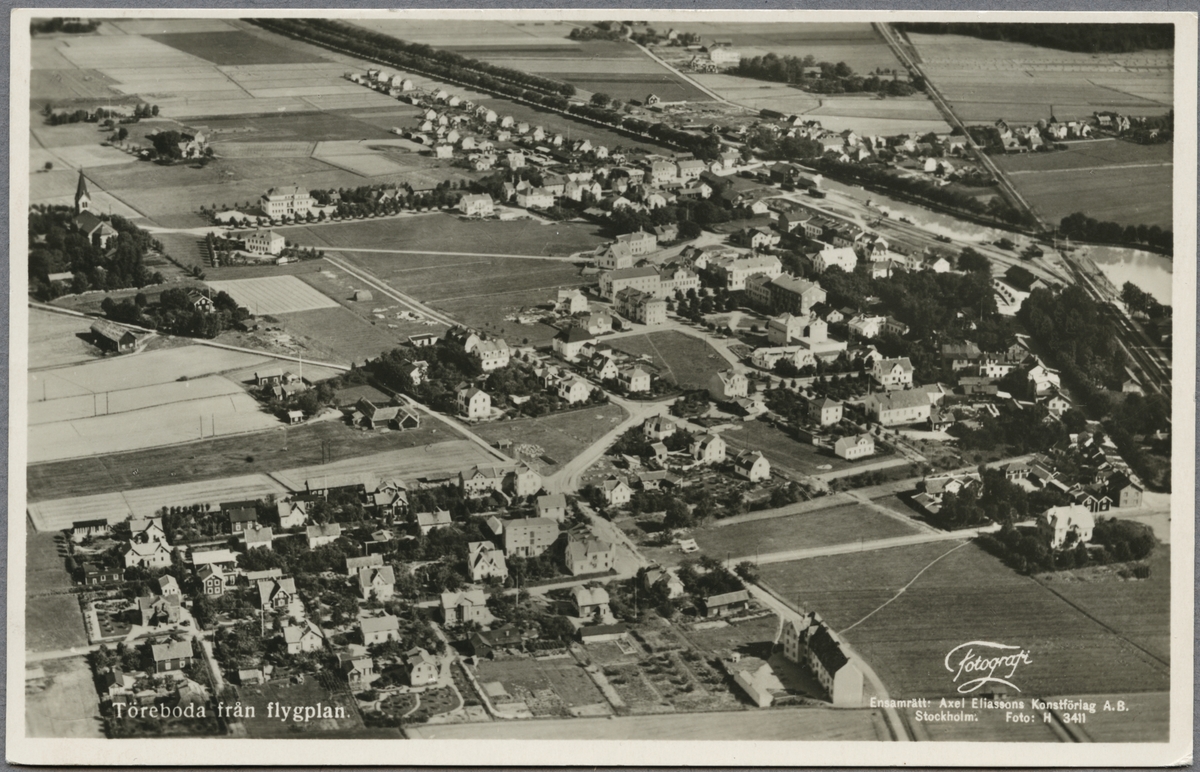 Flygfoto över Töreboda och Göta kanal.