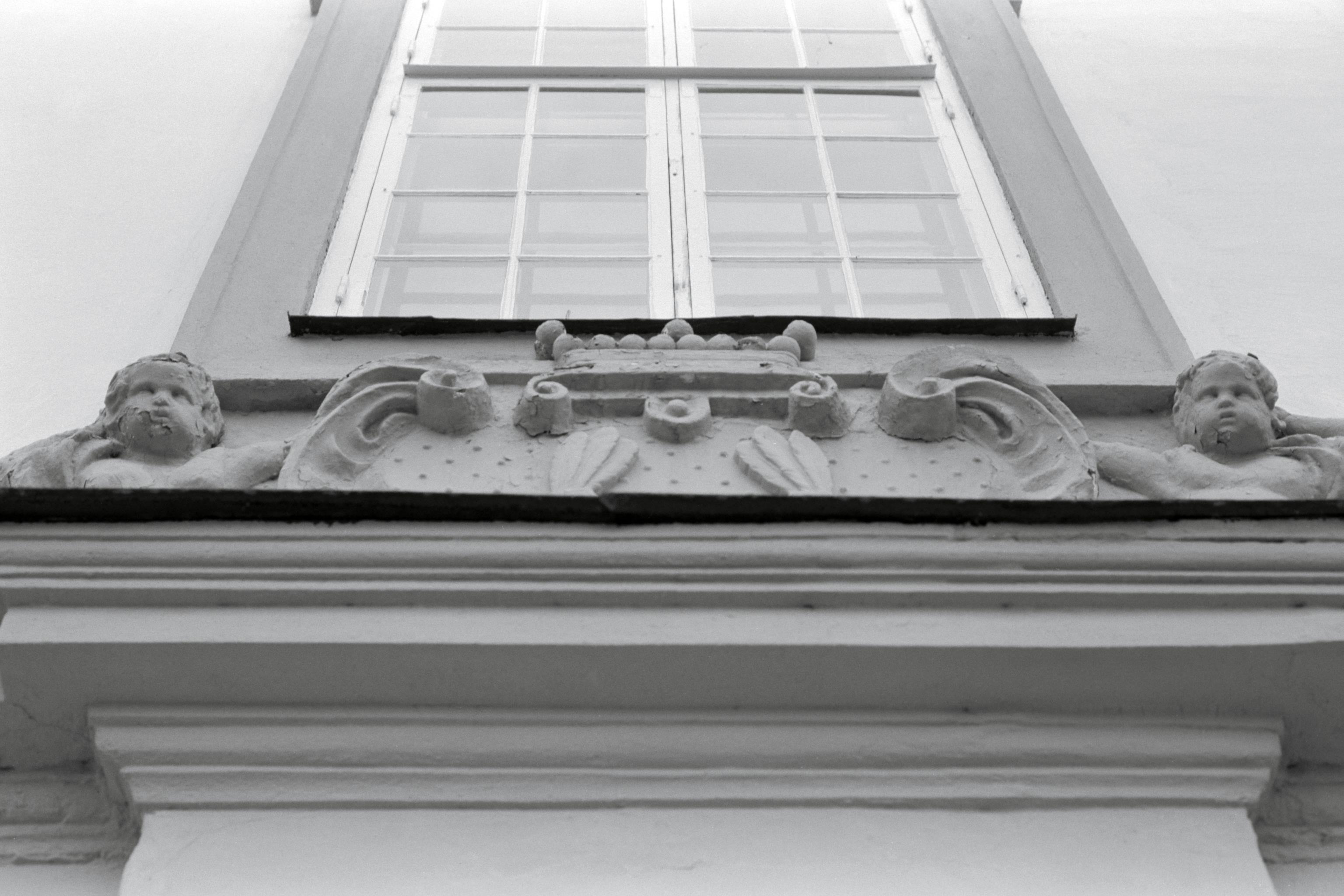 Gårdsportalen. Portalöverstycke med puttigrupp