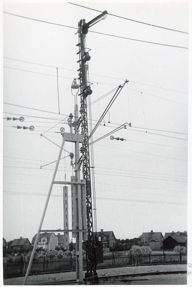 Titel: Del av bangården med semaforen och kontaktledningen.