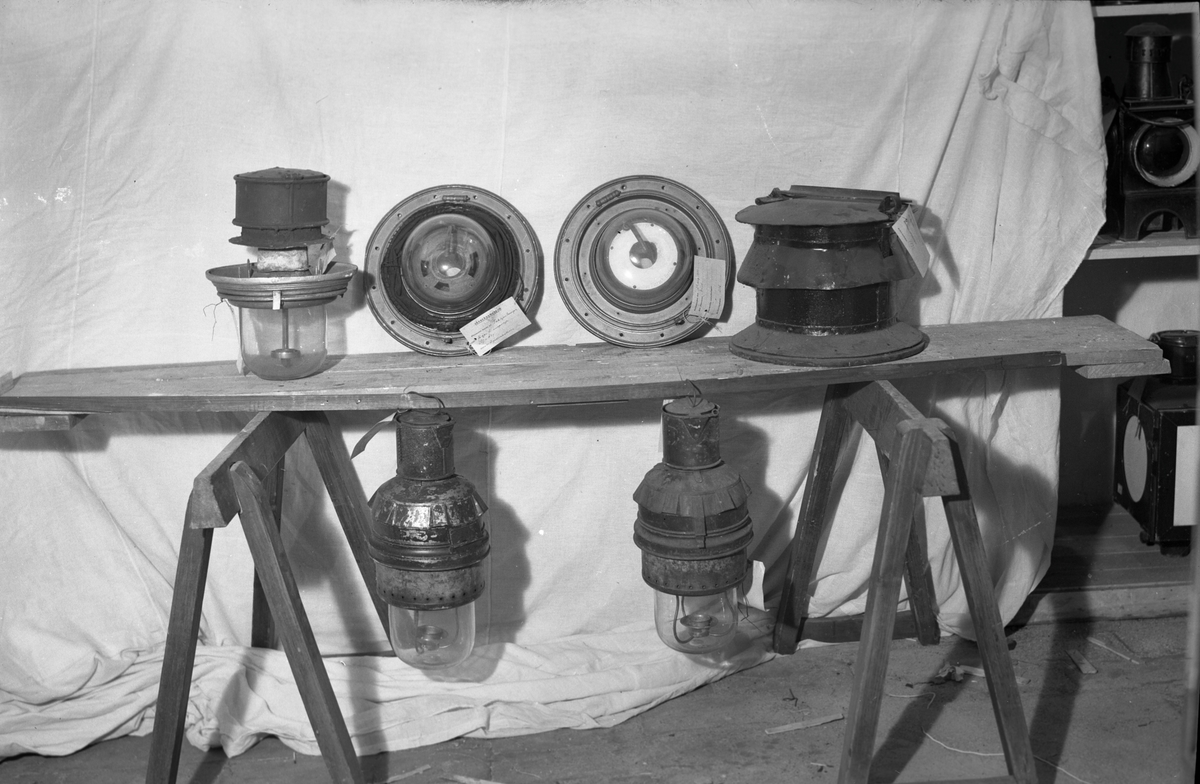 Div lyktor; Järnvägsmuseet. Kupélykta för stearin Ark nr 2161 Kupélykta för gas, fr BJ (Bergslagernas Järnväg) vagn 629 Ark 2136 Kupélykta för gas, fr (BJ) Bergslagernas Järnväg vagn 629 Ark 2135 Lykthuv till kupélykta, gammal Ark nr 941 Kupélykta för stearin Ark nr 5110 Kupélykta för stearin Ark nr 5597