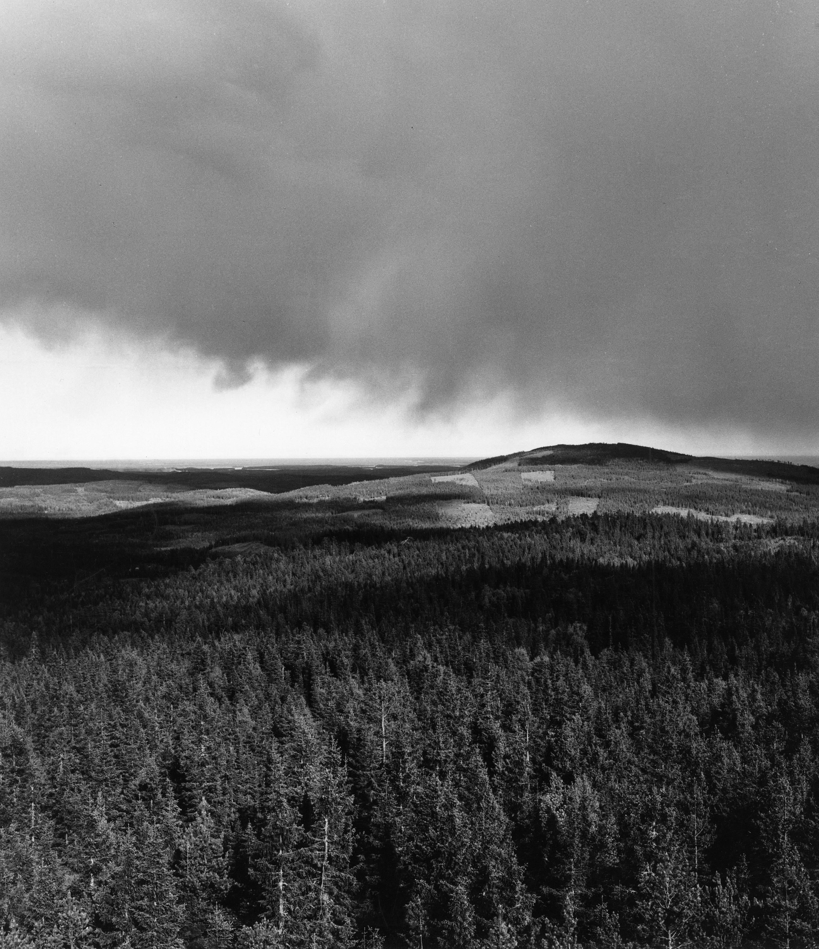 Från Stora Öråsens brandtorn, närmast Blaxåsberget och därefter havet. Bilden troligen från början av 1960-talet.