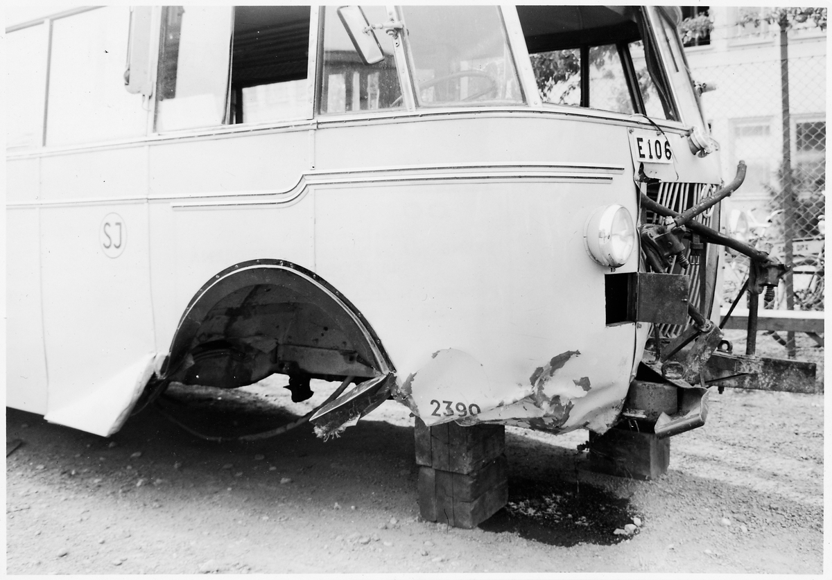 Statens Järnvägar, SJ buss 2390, trafikskadad. Statens Järnvägar.
