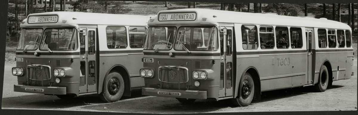 Två av Trafikaktiebolaget Grängesberg - Oxelösunds Järnvägar, TGOJ bussar.