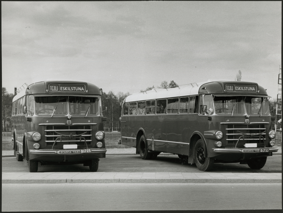 Två av Trafikaktiebolaget Grängesberg - Oxelösunds Järnvägar, TGOJ bussar.