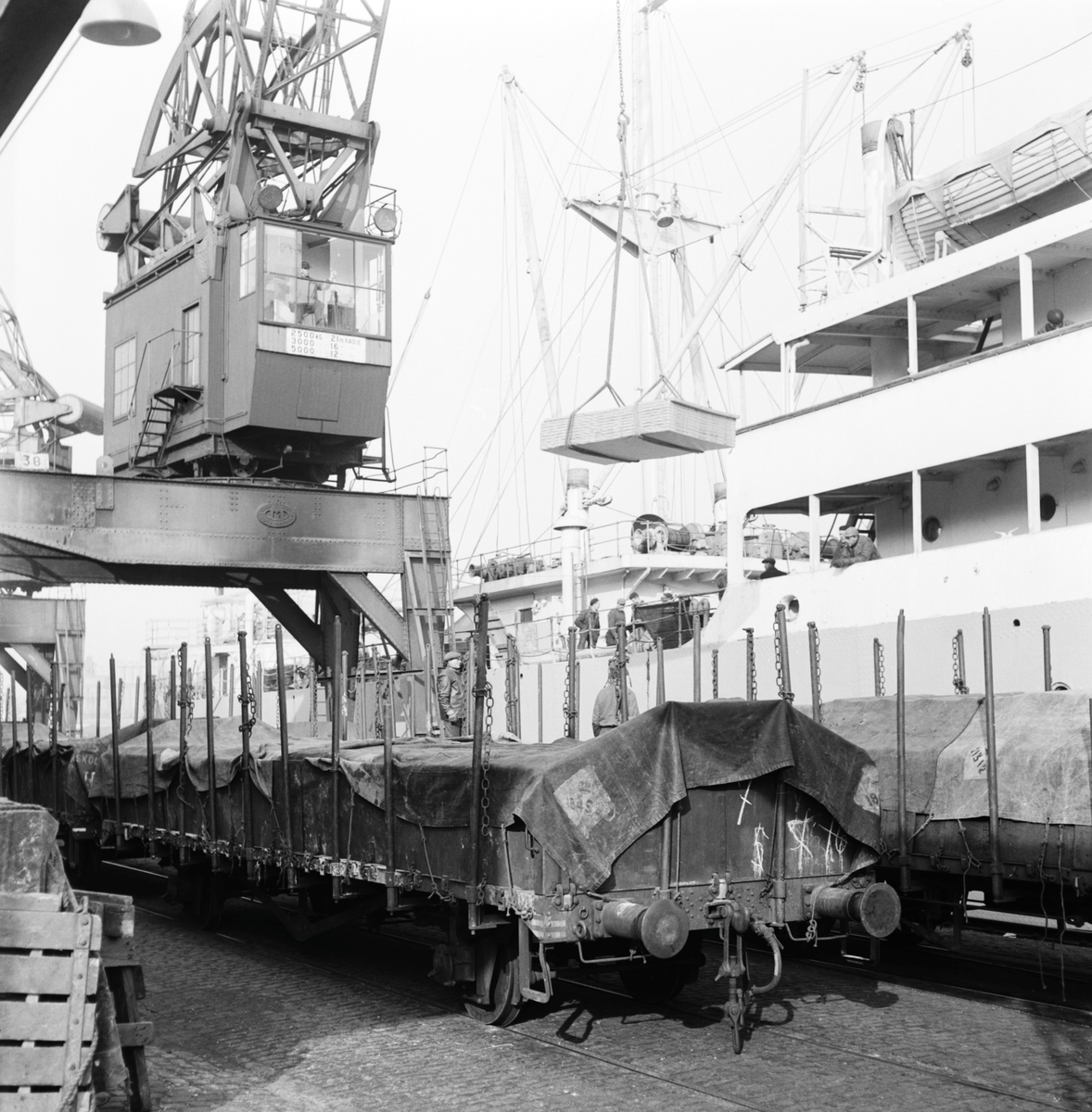 Göteborg. Lossnings- och lastningsarbete i Frihamnen.