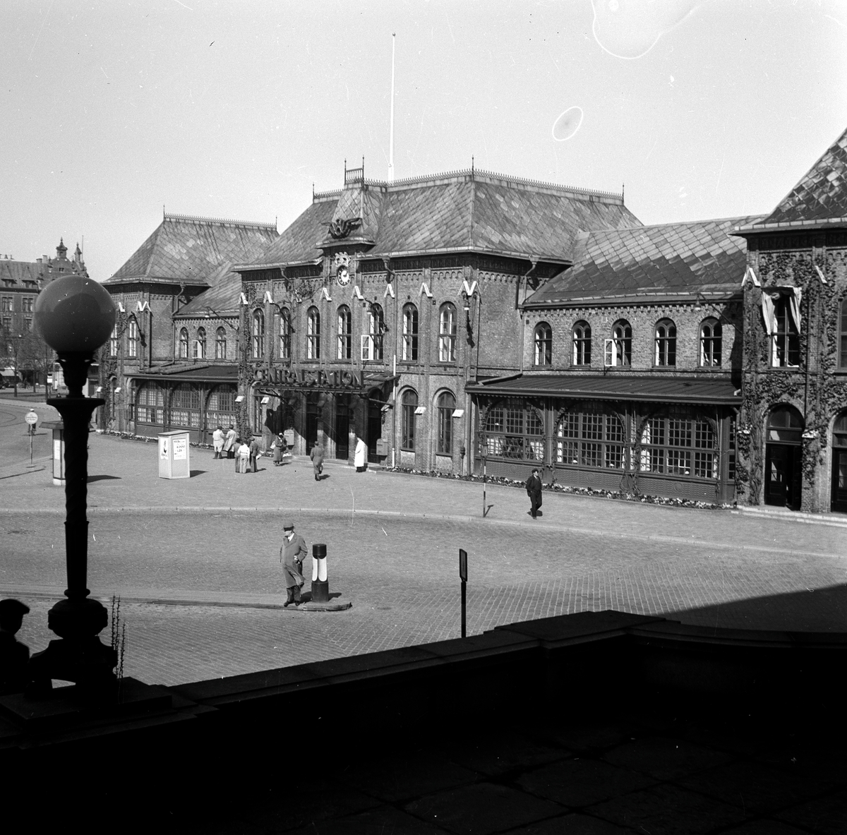 Stationshuset från gatusidan. Hotel Continental i bakgrunden.