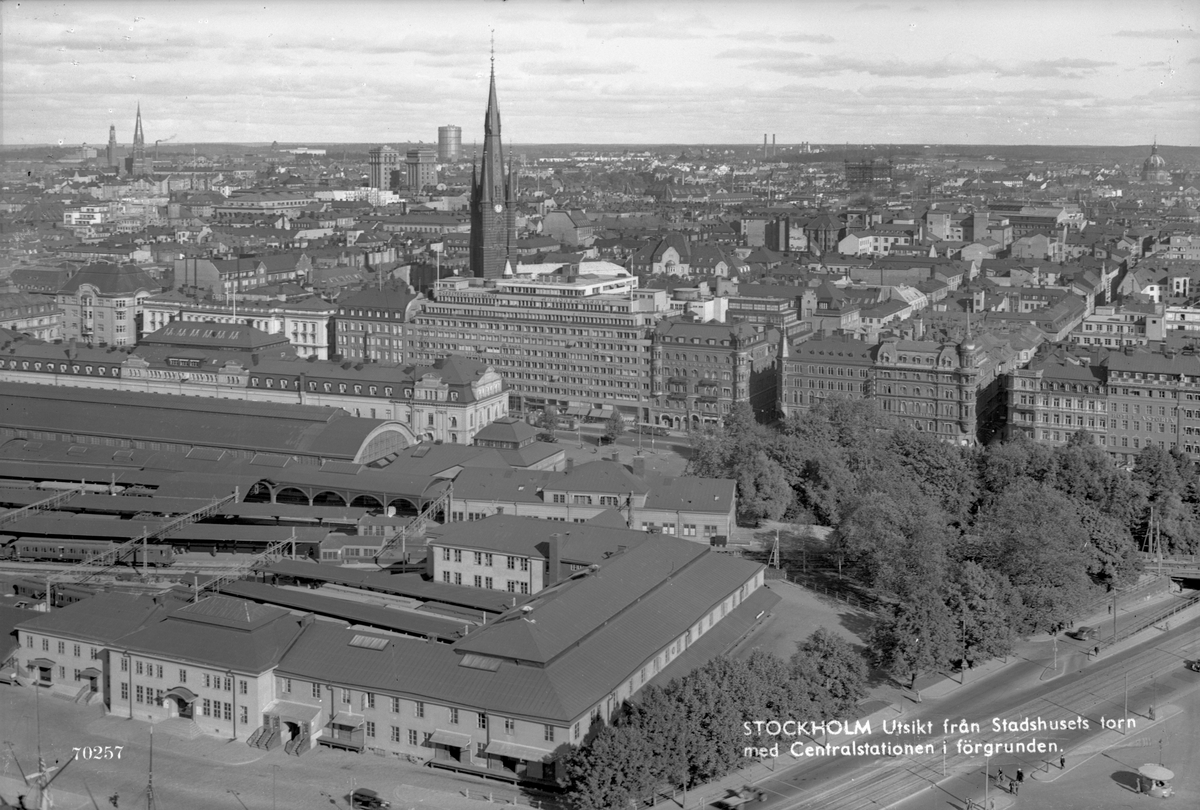 Utsikt från stadshusets torn, med Stockholm centralstation i förgrunden.