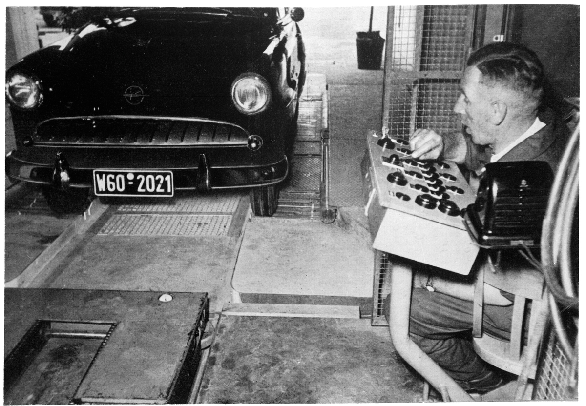Man som sköter hissanordningen på parkeringshuset i Karlsruhe, Tyskland.