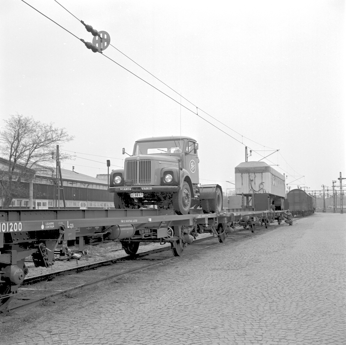 Piggy-Backtransport. Dragbil, Scania Vabis. SJ Lqs 101200