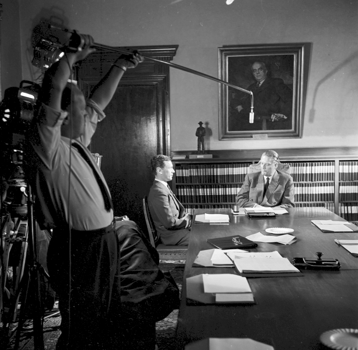 Personen vid bordets kortsida är generaldirektör Erik Upmark.