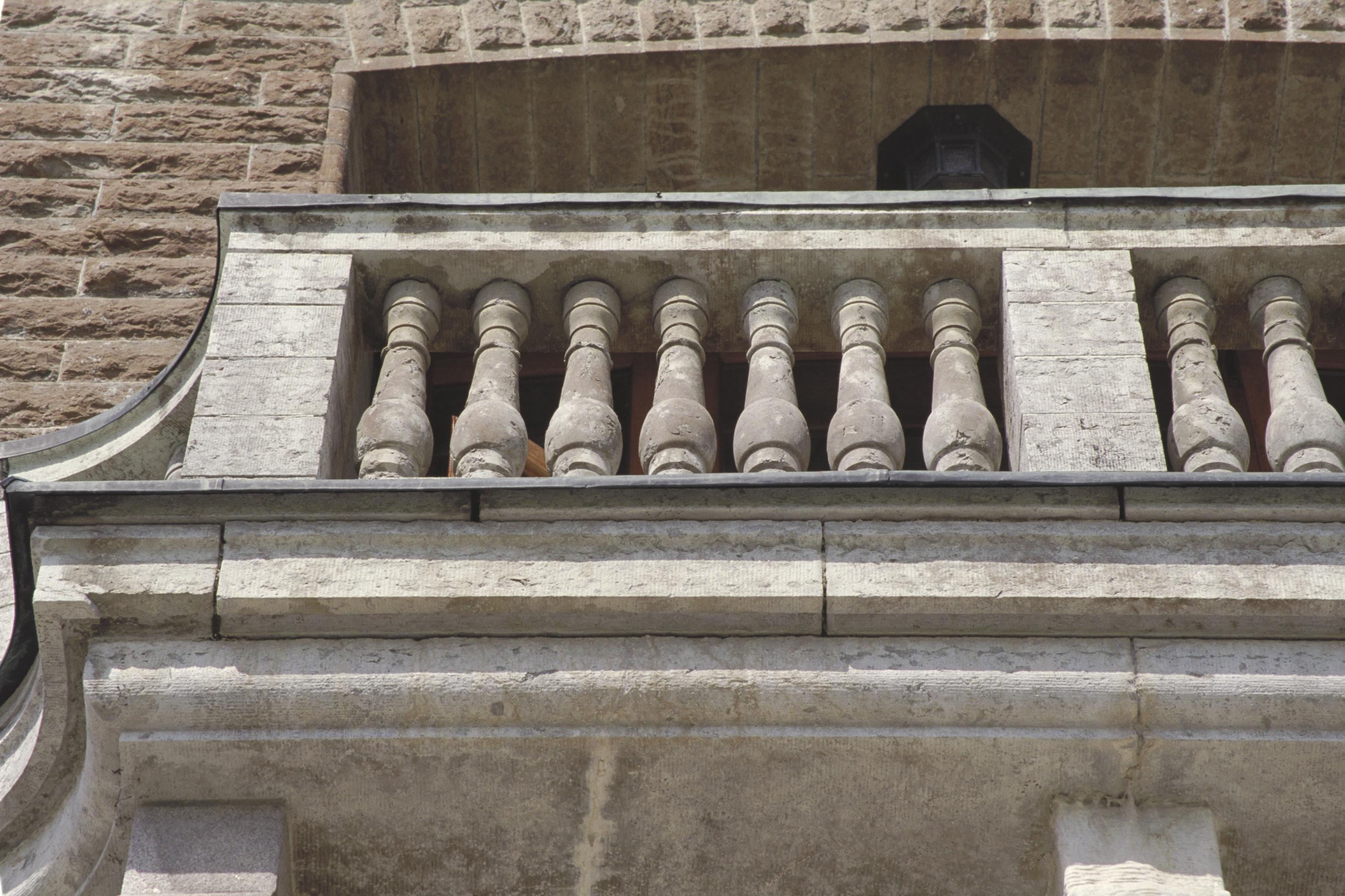 Slottets södra fasad, parkfasaden. Del av den vänstra balkongens bal.