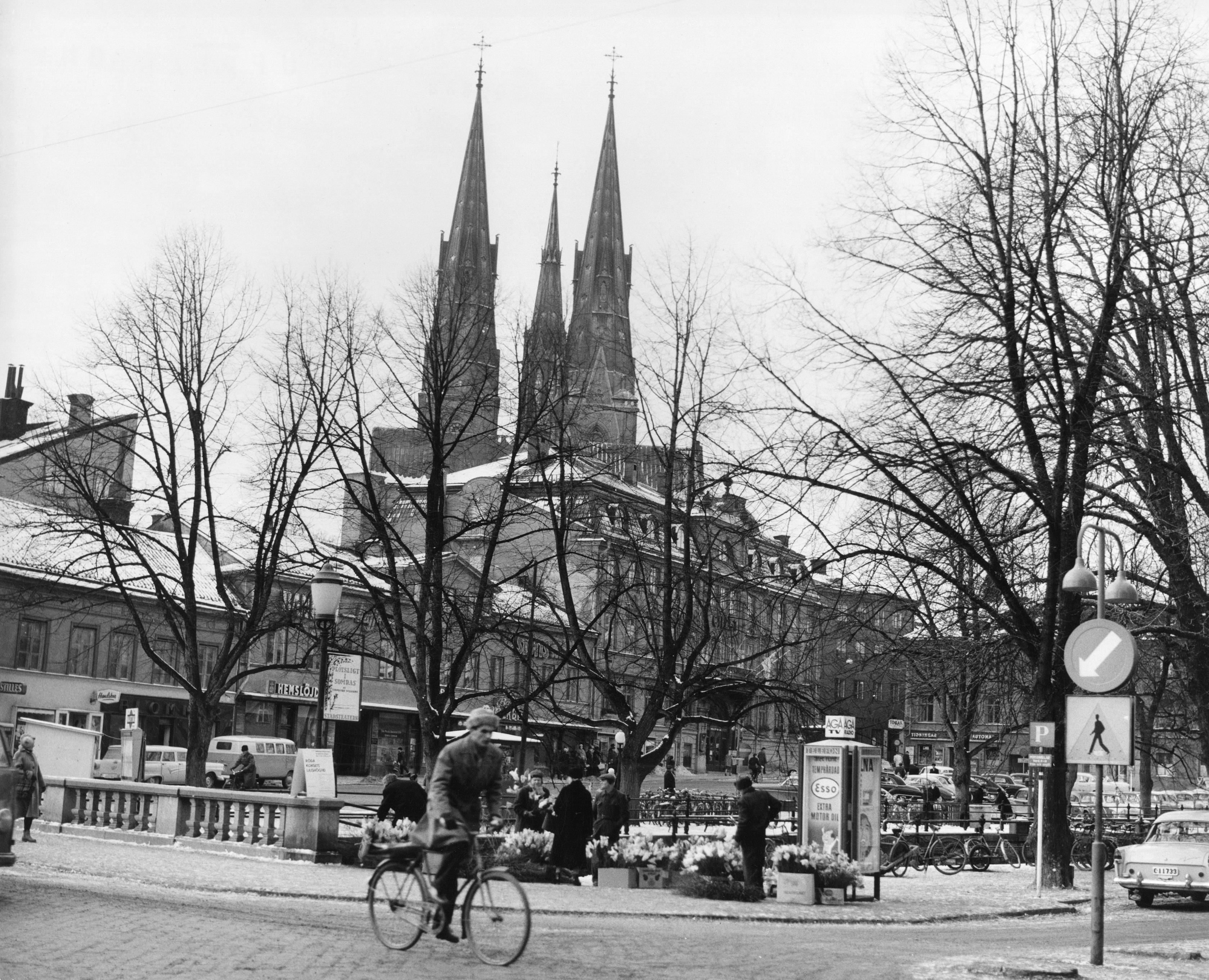 Fyristorg, Uppsala domkyrka i bakgrunden. Bilden troligen från början av 1960-talet.