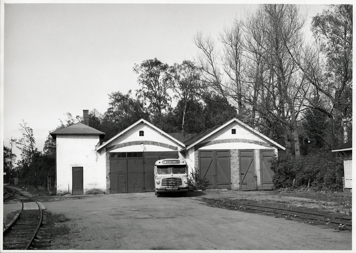 Buss utanför lokstallet i Hjo.