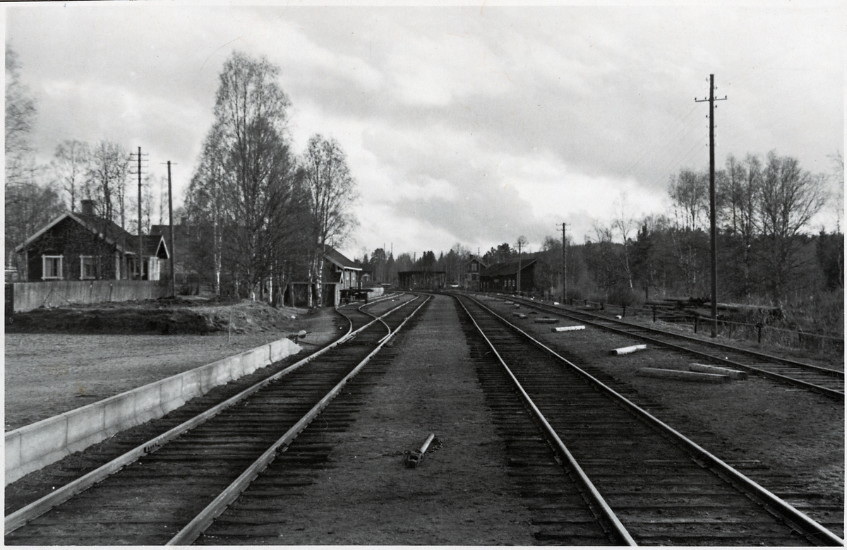 Vy över bangården vid Dockmyr station på linjen mellan Bräcke och Ragunda.