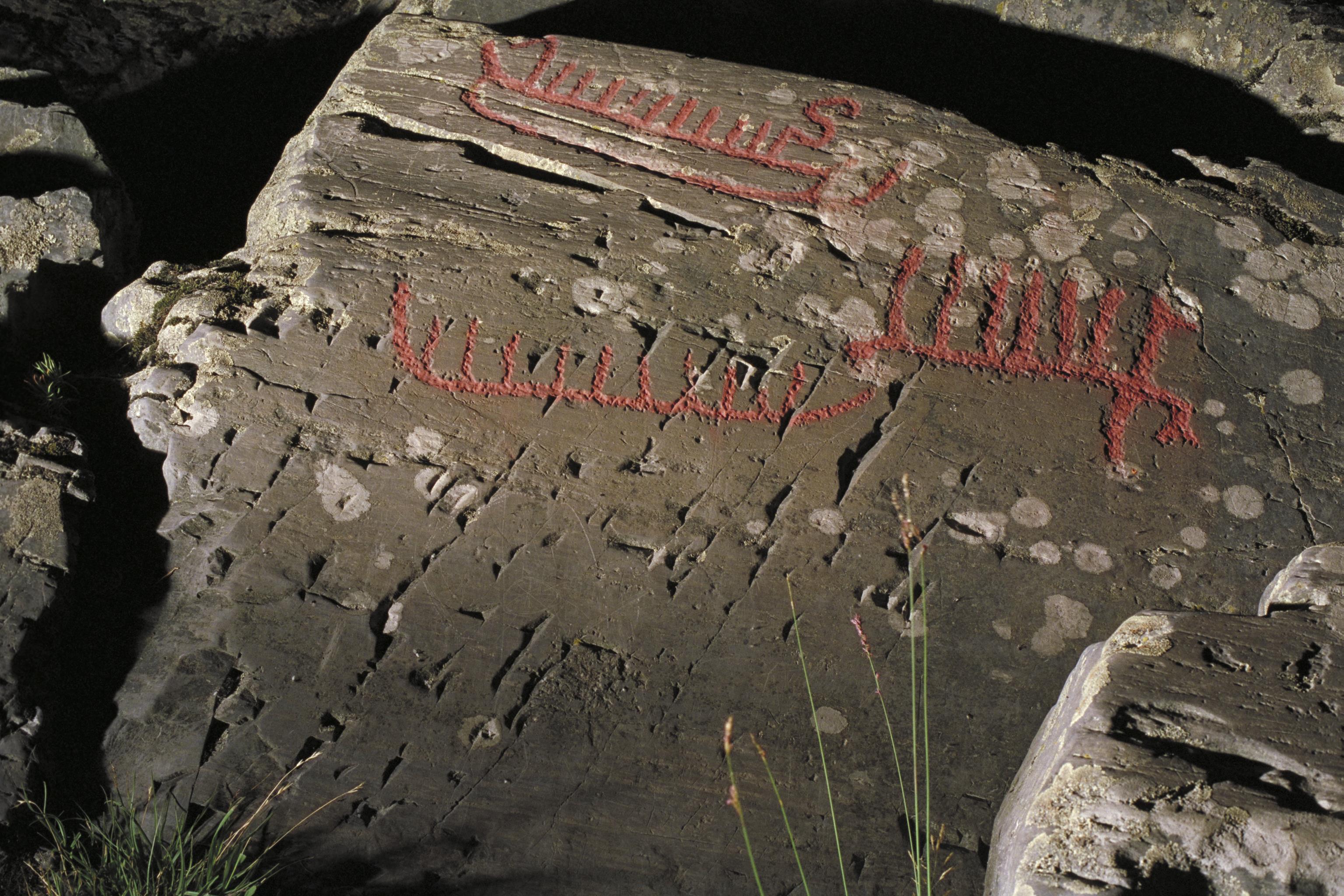 RAÄ-nummer Tisselskog 15:1. Hällens sydligaste del. Skeppsfigurer.