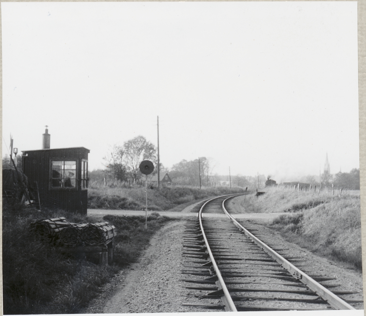 Järnvägsövergång med vaktkur vid Saftstationen på linjen mellan Eslöv och Hurva.
