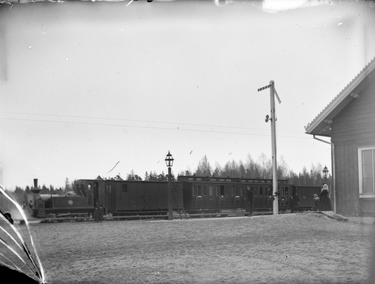 Järnvägsstationen i Gössäter. Mariestad - Kinnekulle Järnväg, MKJ-tåg.