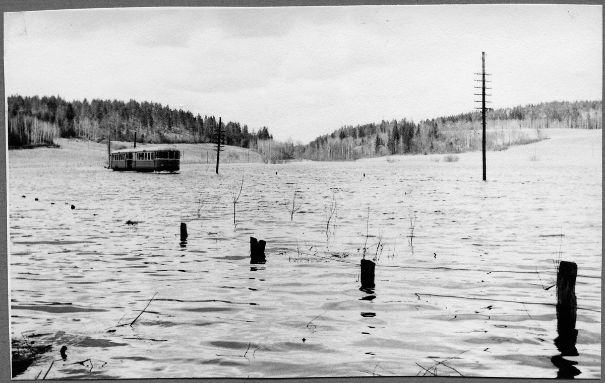 Översvämning i Uknadalen på linjen mellan Storsjö och Nelhammar. Statens Järnvägar, SJ YP.