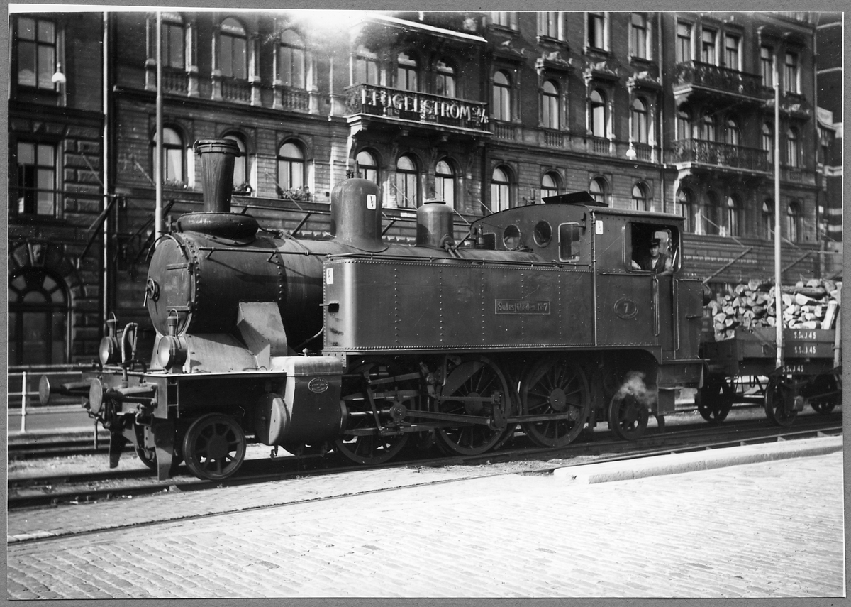 Stockholm - Saltsjöns Järnväg, SSnJ lok 7, SSnJ godsvagn 45.