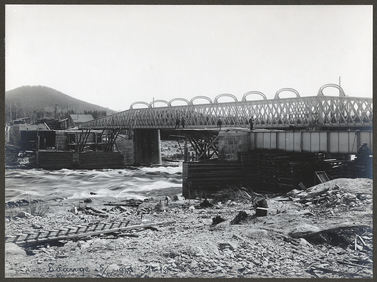 Uppförande av järnvägsbro över Ljusnan älv vid Edänge.