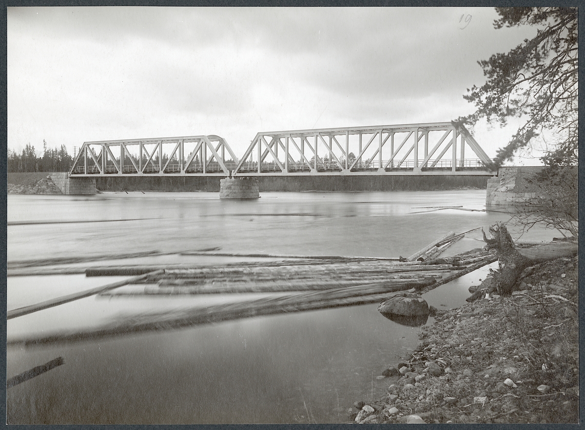 Järnvägsbron över Långan strax ovanför där denna rinner ner i Indalsälven. På Iinjen mellan Litsnäset och Klösta längs Inlandsbanan.