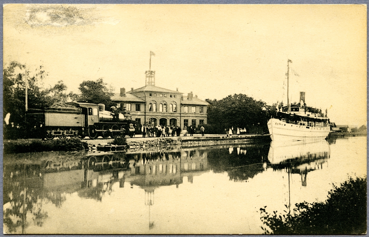 Ånglok vid Töreboda järnvägsstation och S/S Juno i Göta kanal.