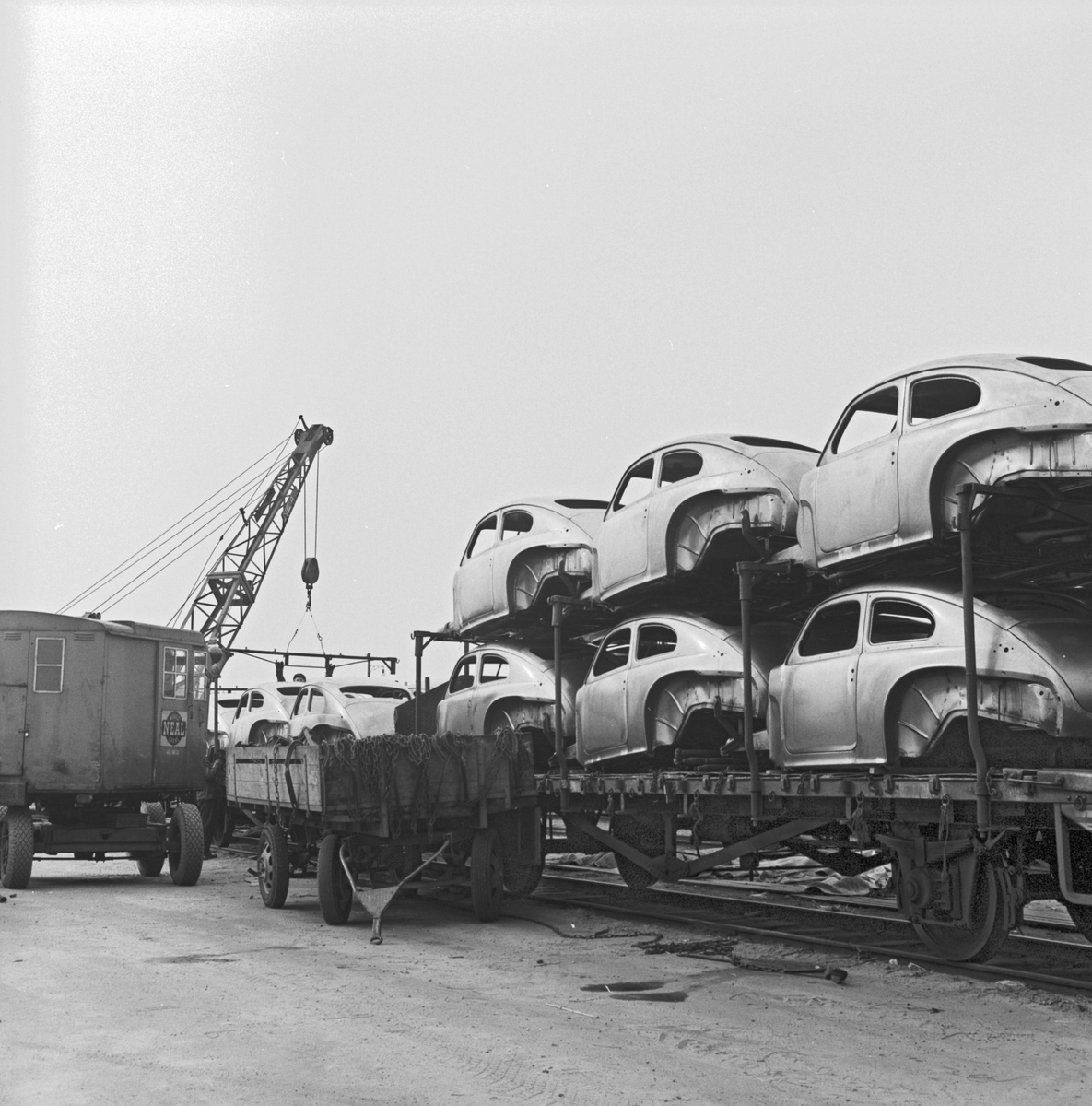 Göteborg. Lossning av Volvo-chassier.