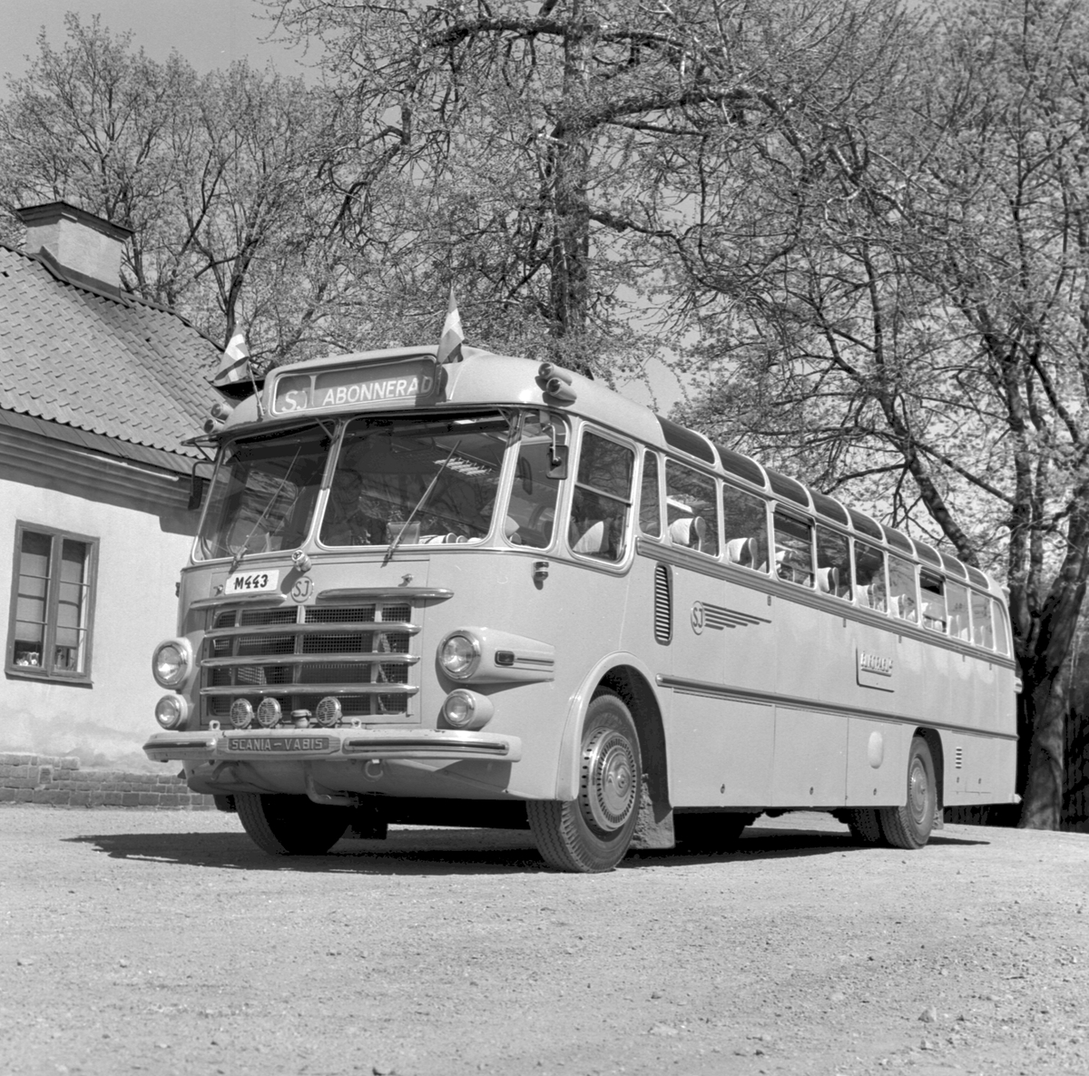 Titel: Statens Järnvägar, SJ abonnerad buss M 443 Scania-Vabis