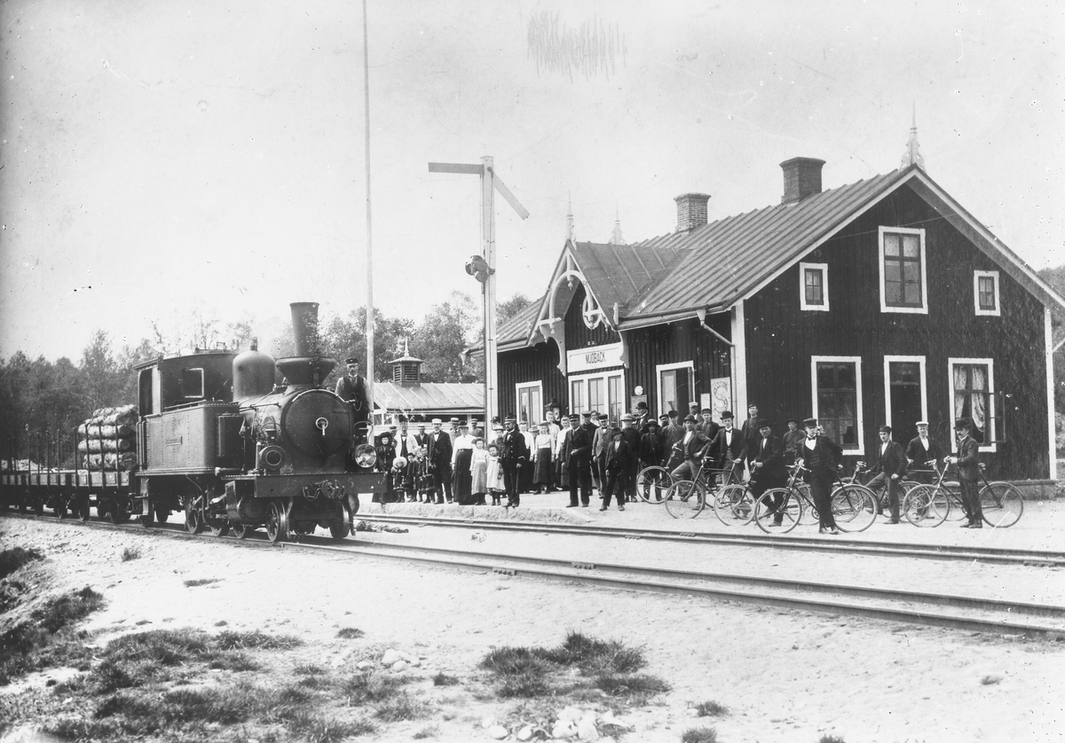 Station anlagd 1898, öppnad 25.11.1899, stationshus med en och en halv våning i trä. Nedklassad till hållplats och avbemannad 1.10.1934 och i samband med detta togs semaforen bort. 1955 återbemannades Mjöbäck och ljussignaler och växelförregling uppsattes. I maj 1959 blev Mjöbäck åter hållplats