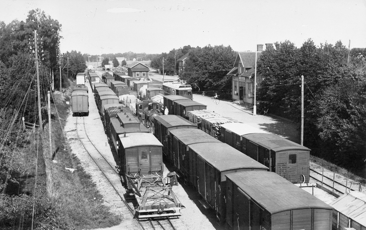 Vy över bangården med alla spåren belagda av fordon.