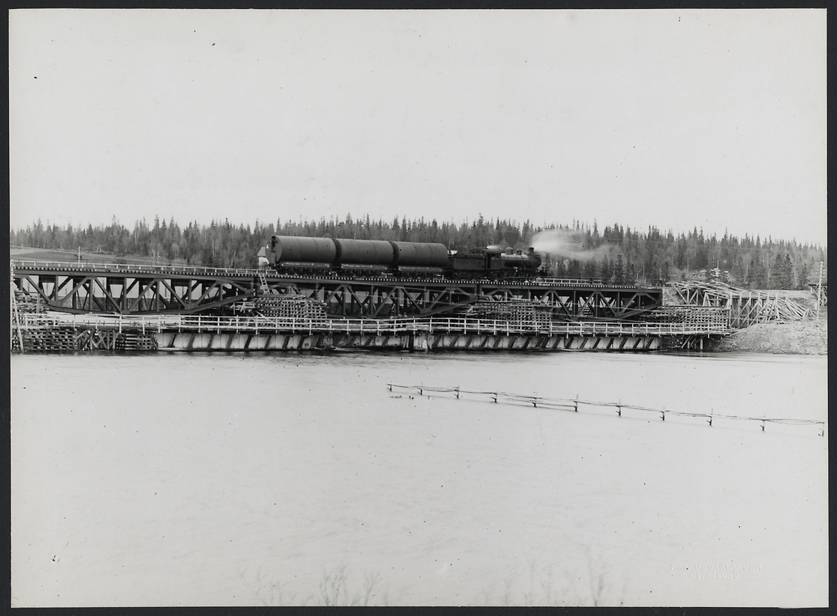 Provbelastning av järnvägsbro över Tångböle älv (Tångböleströmmen, Indalsälven) efter utbyte av överbyggnad. På linjen mellan Duved - Storlien.