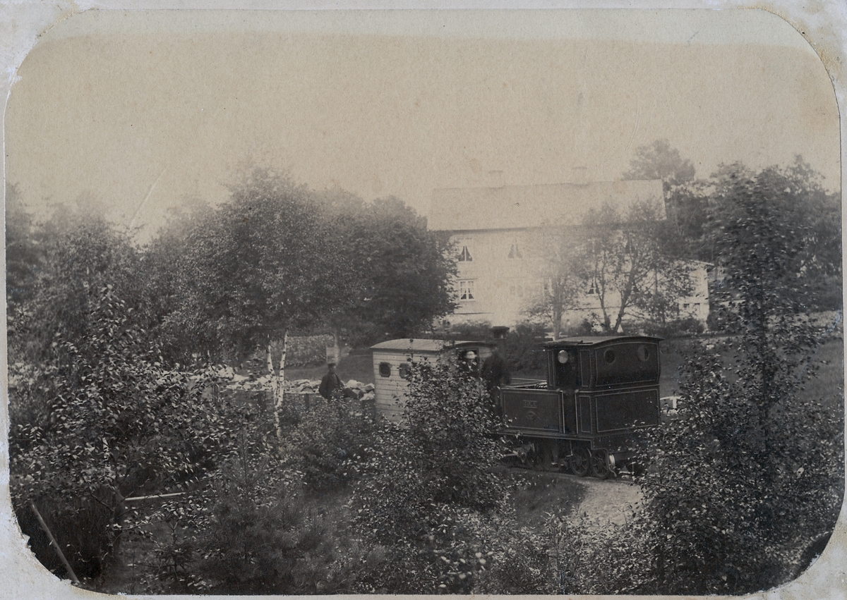 Kroppa Järnväg lok "Carl IX" utanför Gammalkroppa herrgård.