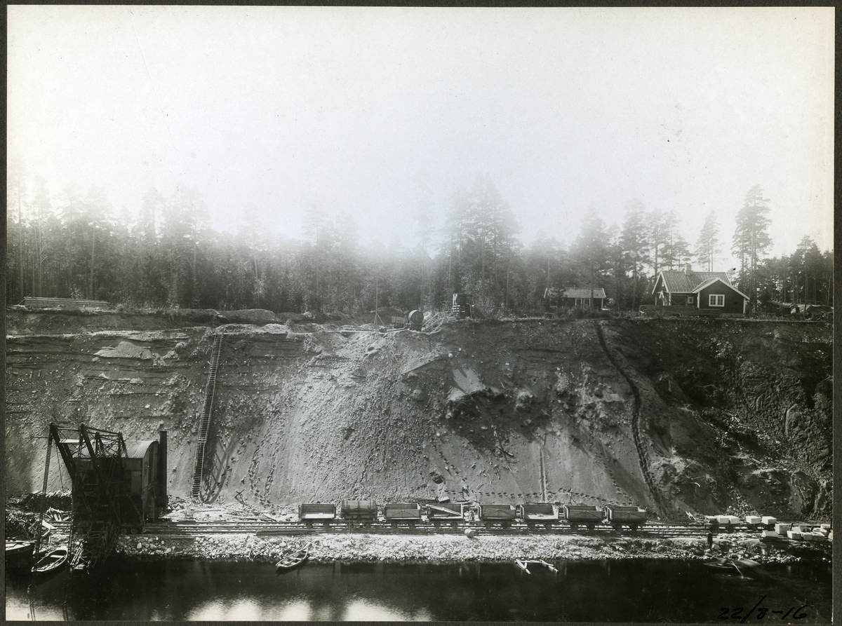 En Decauville bana vid brobygget för dubbelspåret över kanalen mellan Rönninge - Ström