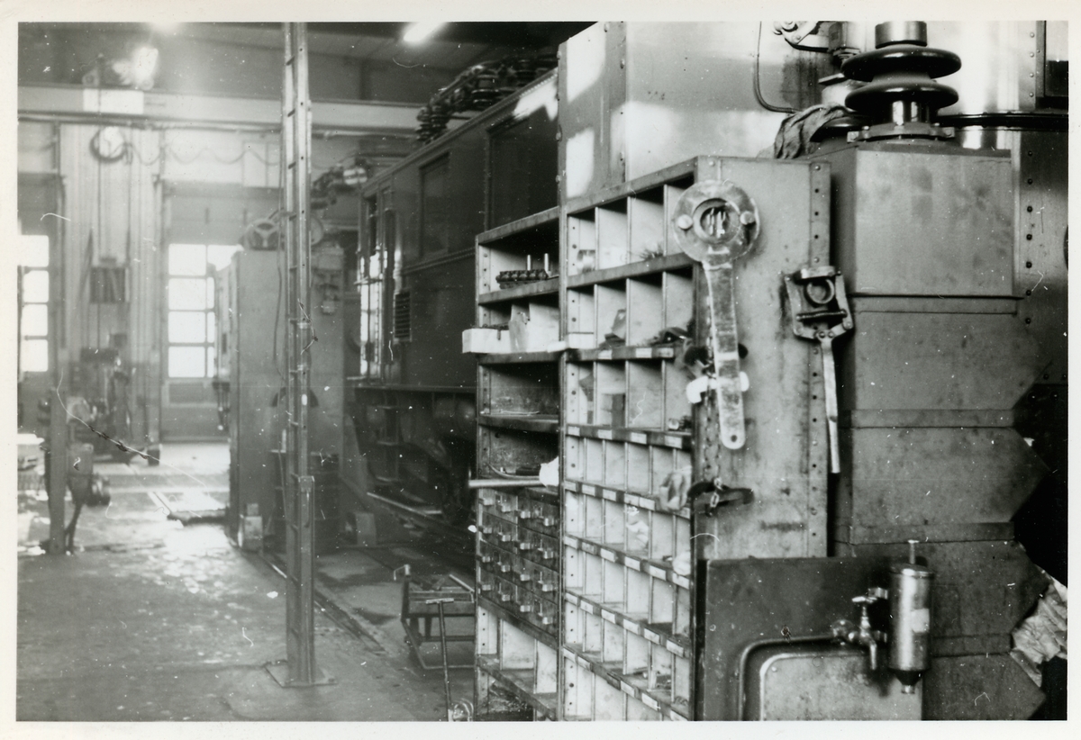 Lokstationverkstad i Ånge. Ett ellok får service.