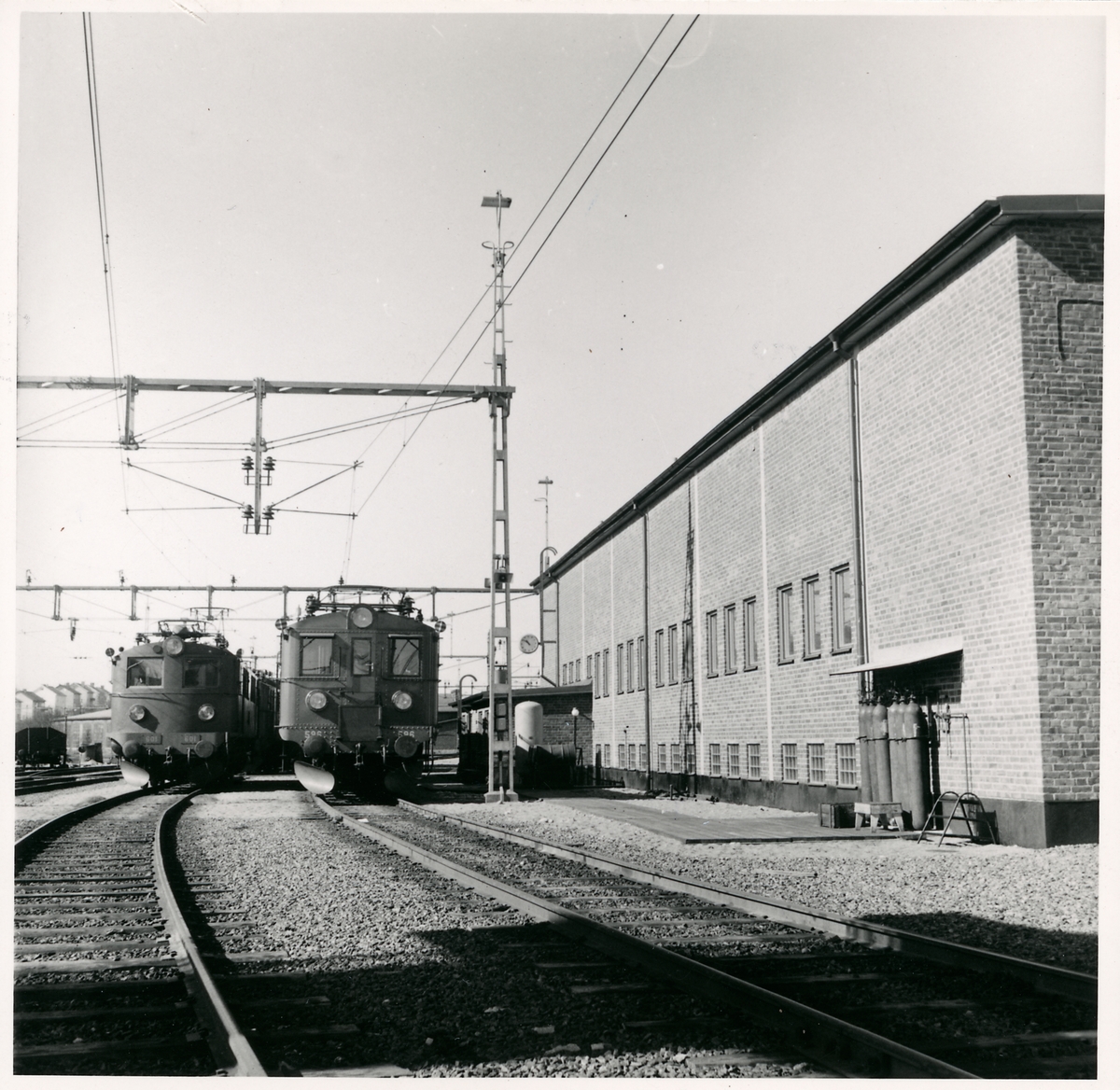 Skötselhall vid Sävenäs. Från vänster Statens Järnvägar, SJ F 601 och SJ Dk 596.