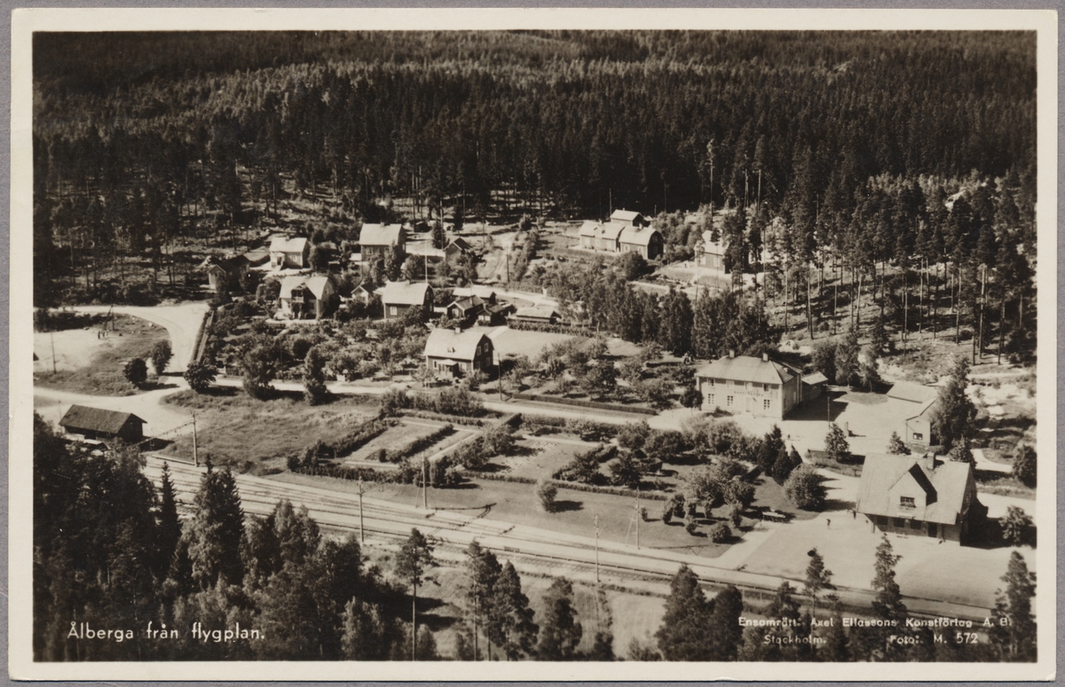 Vy över Ålberga med järnvägen i förgrunden.